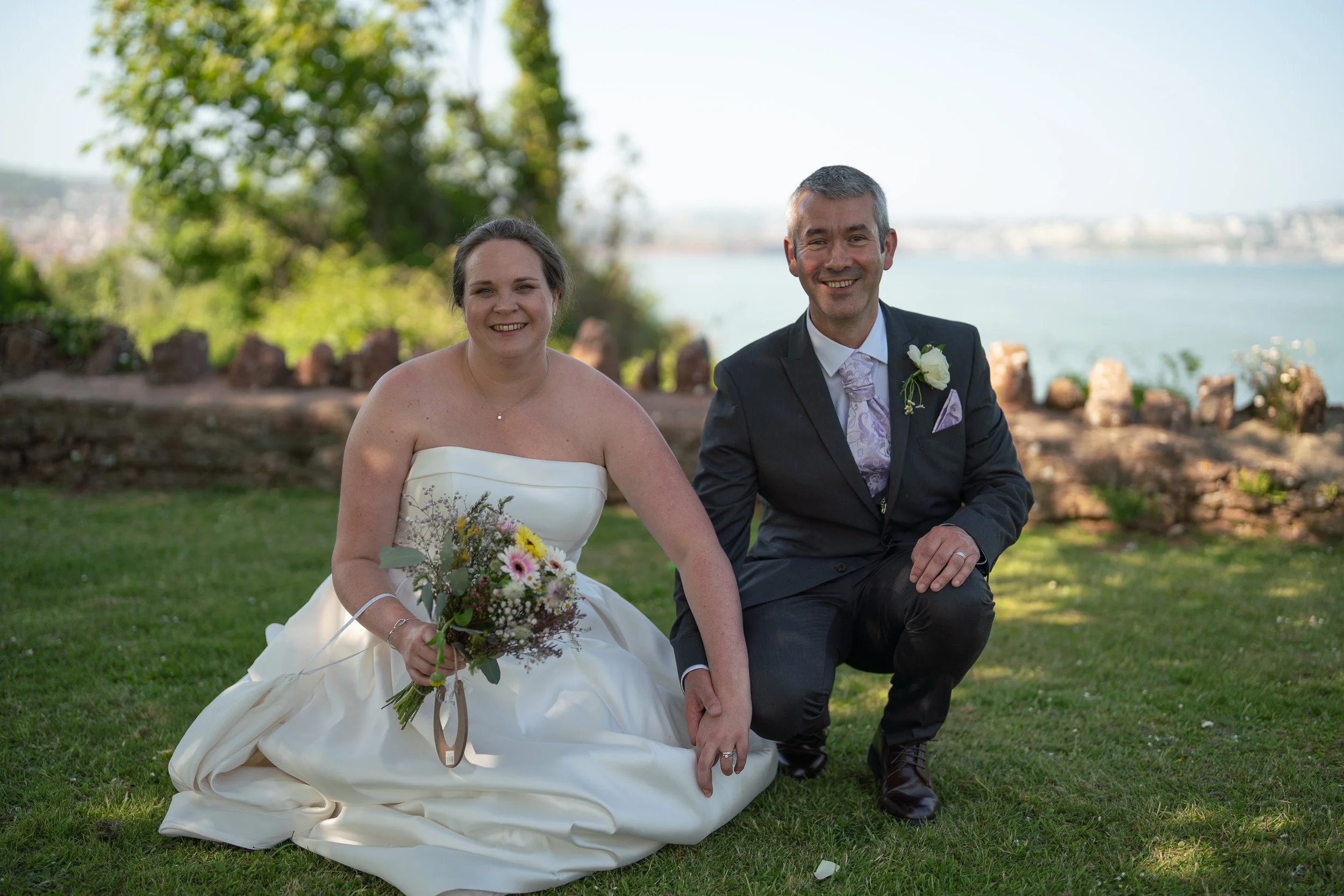 I sent them several location options that I thought they might like, ranging from the charming harbour edge with its serene waters to spots just outside the venue and nearby natural wonders. After careful consideration, they elected to go for most of the shots, after the service, on the cliff top, overlooking the breathtaking Paignton harbour.